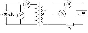 19.2009年春节前后,我国部分省市的供电系统由于气候原因遭到严重破坏。为此,某小区启动了临时供电系统,它由备用发电机和副线圈匝数可调的变压器组成,如图所示,图中R0表示输电线的电阻。滑动触头P置于某处时,用户的用电器恰好正常工作,在下列情况下,要保证用电器仍能正常工作,则 ( )