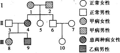 (11分)如图所示是具有两种遗传病的家庭系谱图,设甲病显性基因为A,隐性基因为a;乙病显性基因为B,隐性基因为b。若Ⅱ7为纯合子,请据图回答: