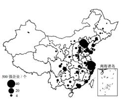 材料1 2008年中国制造业企业500强总部的空间分布图