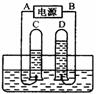 (1)右图为电解水的装置,水在直流电作用下生成氢气和氧气。下列微粒中