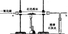 [设计实验方案]同学们对实验作了如下设想和分析:取少量红色粉末放入硬质玻璃管中,通入一氧化碳片刻后高温至充分反应(实验装置图如下)。