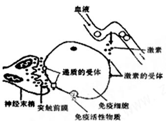 (1)由图可知,神经系统可通过突触前膜 直接调节免疫器官或免疫细胞的活动,还可通过下丘脑分泌有关激素间接调节免疫器官或免疫细胞的活动。