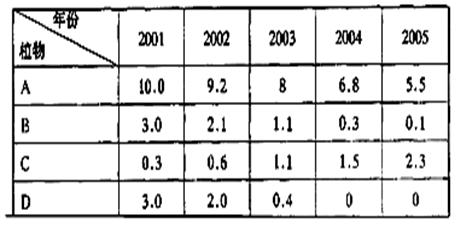 (3)调查小组对一块荒地的几种植物的种群密度进行了连续五年的调查,调查的结果如下表所示(单位:株/m2 )。