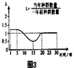(4)图3是调查小组同学从当地主管部门获得的某物种种群数量的变化图,据此分析该种群在30年中种群数量最少的是第 年,第20-30间种群的增长率为