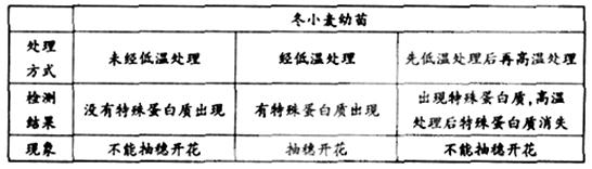 (2)冬小麦必须经过春化作用才能开花结实,用低温诱导促使植物开花的作用称为春化作用。高温、缺氧和缺水等均可以解除春化。下表是对冬小麦进行春化处理的研究结果,请回答: