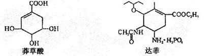 9.达菲是治疗甲型H1N1流感的有效药物之一。合成达菲的原料是莽草酸,已知莽草酸和达菲的结构简式如下图所示,则有关说法中不正确的是 ( )