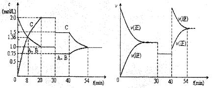 13.某密闭容器中充入等物质的量的A和B,一定温度下发生反应A(g)+B(g)2C(g),达到平衡后,只改变反应的一个条件,测得容器中物质的浓度、反应速率随时间变化如下图所示,下列说法正确的是 ( )