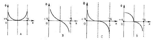 20.两带电量分别为+q和-q的点电荷放在x轴上,相距为L,假设无穷远处电势为零,能正确反映两电荷连线上电势大小