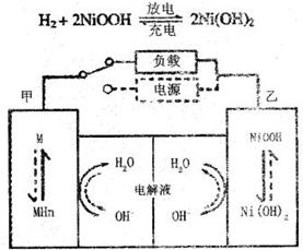 (2)混合动力车的电动机目前一般使用的是镍电池,镍氢电池采用镍的化合物为正极,储氢金属(以M表示)为负极,碱液(主要为KOH)为电解液。镍氢电池充放电原理示意如图,其总反应式是:
