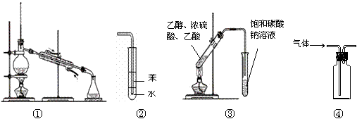 C.装置③可用于制备乙酸乙酯 D.装置④可用于收集NO、CO2等气体