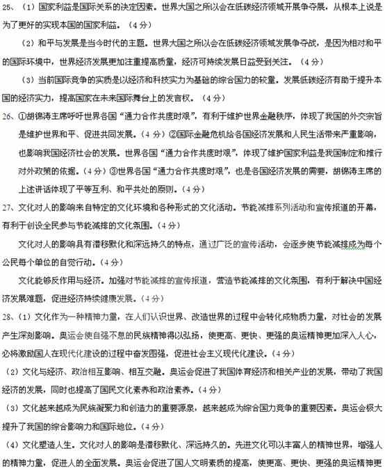 2009--2010年下学期辽宁省沈阳市重点高中联合考试政治