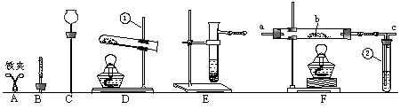 (1)仪器①的名称是 ;要用上图仪器组装成制气装置:用KMnO4加热分解制O2应选 (填字母);用废铁屑与稀盐酸反应制取H2,应选 (填字母)。