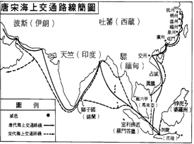 (3)读图,唐宋时期中国海外贸易港口的分布区域主要集中于什么地区(1分)?中国对外贸易的主要对象分布在图中的哪些区域(1分)?说明理由。(3分)