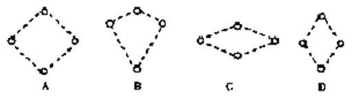 14.如图所示,在高空中有四个小球,在同一位置同时以初速度v0分别向上、向下、向左、 向右被抛出,不计空气阻力,经过1s后(小球未落地),四个小球在空中的位置构成的正确图形是 ( )