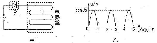 16.甲图所示是某种型号的电热毯的电路图,电热毯接在交变电源上,通过装置P使加在电热丝上的电压的波形如乙图所示。若电热丝的电阻为110Ω ,则以下说法中正确的是( )