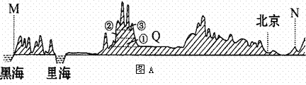 图A是沿40°N附近地区所做的地形剖面图,读图回答11-12题。