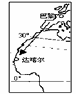 15、自巴黎至达喀尔,若沿箭头方向行进,在沿途难以见到的景观是