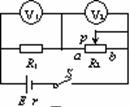 福建省龙岩二中2010届高三摸底考试如图7所示电路中,电源内阻不能忽略,两个电压表均为理想电表。当滑动变阻器R2的滑动触头P移动时,关于两个电压表V1与V2的示数,下列判断正确的是 ( AC )