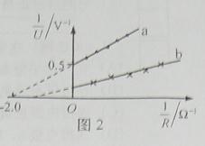 关系图线a,重复上述实验方法测量电池b的电动势和内阻,得到图2中的图线b.