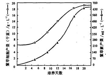 (7分)紫草素是紫草细胞的代谢产物,可作为生产治疗烫伤药物的原料。用组织培养技术可以在生物反应器中通过培养紫草细胞生产紫草素。下图记录了生物反应器中紫草细胞产量、紫草素产量随培养时间发生的变化。