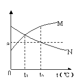 5、右图是M、N两种物质的溶解度曲线,在t2℃时往盛有100g水的烧杯 ( )
