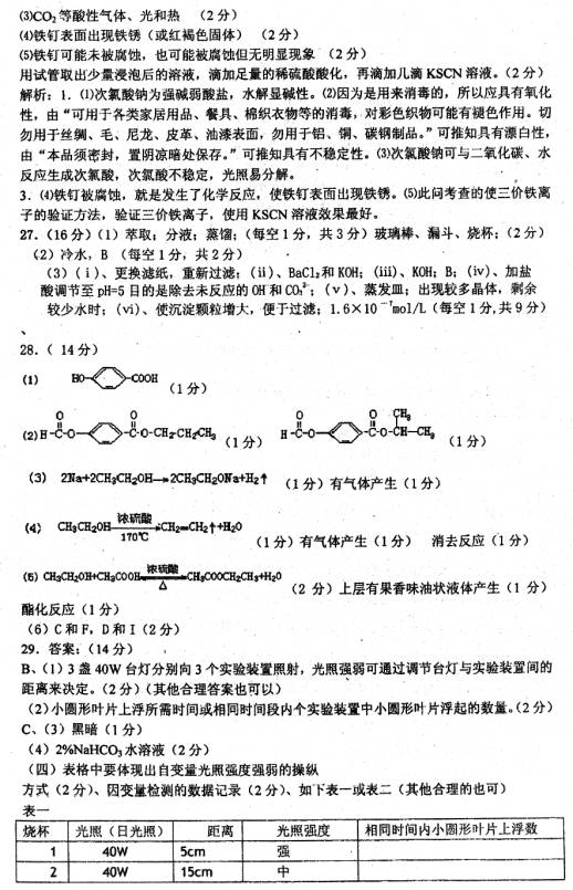A.材料用具:打孔器、40W台灯数台、200ml烧杯数只、绿叶(如菠菜叶片)、2% NaHCO3、水溶液、注射器、秒表等。