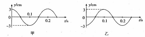 16.甲、乙两图分别表示一简谐横波在传播方向上相距3.0m的两质点的振动图象,如果波长大于1.5m,则该波的波速大小可能是 ( )