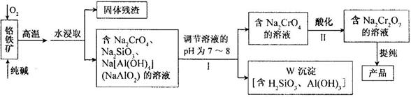 ⑴铬铁矿中的Cr2O3与纯碱、O2在高温下反应的化学方程式为 。