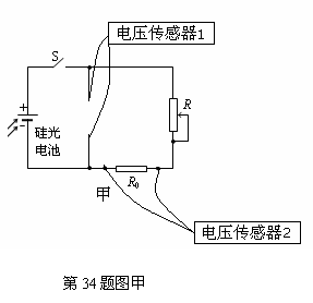 (2)(15分)硅光电池是一种可将光能转换为电能的器件。某同学用DIS探究硅光电池的路端电压U与总电流I的关系,电路见图甲。图中R0为已知定值电阻。实验主要步骤如下: