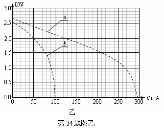 ④减小实验步骤③中光的强度,重复实验,测得U-I曲线如图乙中b所示。