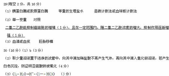 29.(16分)二氯二乙胺能够阻止参与DNA复制的酶与DNA相互作用。某生物兴趣小组的同学推测:二氯二乙胺能抑制癌细胞的增殖,并就此问题设计实验进行探究。