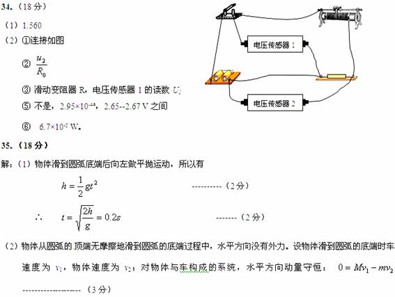 34.(1)(3分)用游标卡尺测量某一小球的直径如下图所示,则游标卡尺的读数是
