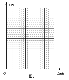⑶正确连接电路后,这位同学闭合开关,测得一组U、I数据;再调节滑动变阻器,重复上述测量得出一系列数据如下表所示,请你在图丁的坐标系中作出U-I关系图线.