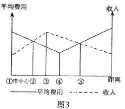 读“某类工业收益空间界限的区位模式图”(图3),回答6-7题。