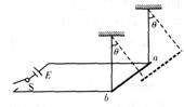 [预测题23]光滑平行导轨水平放置,导轨左端通过开关S与内阻不计、电动势为E的电源相连,一根质量为m的导体棒ab,用长为l的绝缘细线悬挂,悬线竖直时导体棒恰好与导轨良好接触且细线处于张紧状态,如图所示,系统空间有匀强磁场.当闭合开关S时,导体棒被向右摆出,摆到最大高度时,细线与竖直方向成