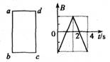 [预测题22]矩形导线框abcd放在匀强磁场中,在外力控制下静止不动,磁感线方向与线圈平面垂直,磁感应强度B随时间变化的图像如右图所示。t = 0时刻,磁感应强度的方向垂直纸面向里,在0-4 s时间内,线框ab边受力随时间变化的图像(力的方向规定以向左为正方向)可能是下图中的