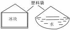 如图所示,夏天里把一大块冰放在塑料袋中,过一段时间后,冰变成了水,这是______现象,塑料袋没有漏水,但是在塑料袋外面却出现一层水珠,这是_________现象,其中放热的物态变化主要发生在______(填“袋内”、“袋外”或“袋内和袋外”)表面;同时发现,冰变成水后,塑料袋向四周鼓起来,这是因为___________。