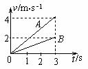 如图为两个物体A和B在同一直线上沿同一方向同时作匀加速运动的v-t图线。已知在第3s末两个物体在途中相遇,则物体的出发点的关系是