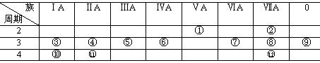 ⑵在这些元素中,最活泼的金属元素是 ,最活泼的非金属元素是 ,最不活泼的元素是 。