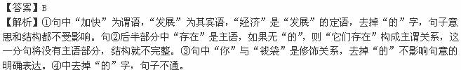 [解析]①句中的“的”构成偏正结构,使“下跌”成为主语,句子转为短语,意思就变了,必须删除。③“从……事实”是介宾短语作句子状语,而使句子缺少了主语,应去掉“从”,让“事实”作主语。