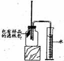 (6)现仅提供:置筒、大烧杯、玻璃棒、水、滤纸包(内含1 g铁粉、O.2 g碳、10滴水和少量NaCl),请你帮助小明再设计一个测量空气中氧气体积含量的实验方案,在右框中画出实验装置示意图即可(注明滤纸包的位置)。