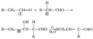 例5、以乙烯为起始反应物可制得丁醇。已知两个醛分子在一定条件下可以自身加成。下式中反应的中间产物(Ⅲ)可看成是由(I)中的碳氧双键打开,分别跟(Ⅱ)中的a位碳原子和a位氢原子相连而得;(Ⅲ)是一种3-羟基醛,此醛不稳定,受热即脱水而生成不饱和醛(烯醛)。