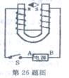 26.如图所示,闭合开关S,小磁针的N极指向通电螺线管的左侧,请判