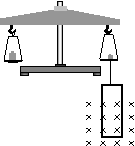 [例10]安培秤如图所示,它的一臂下面挂有一个矩形线圈,线圈共有N匝,它的下部悬在均匀磁场B内,下边一段长为L,它与B垂直。当线圈的导线中通有电流I时,调节砝码使两臂达到平衡;然后使电流反向,这时需要在一臂上加质量为m的砝码,才能使两臂再达到平衡。求磁感应强度B的大小。
