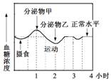D.从图中可看出,血糖浓度的相对稳定是分泌物甲和分泌物