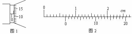 (2)在用单摆测定重力加速度实验中,用游标为20分度的卡尺测量摆球的直径,示数如图2所示,读数为__________________cm。
