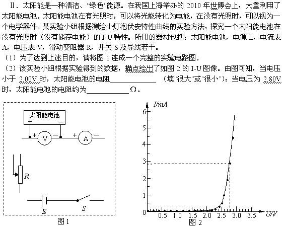 (2)在电压小于2.00V时,由图可读出电流很小,由