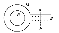 属导轨,导轨跟固定的大导体环M相连接,导轨上