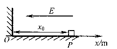 24.(18分)把一个质量为m、带正电荷且电量为q的小物块m放在一个水平轨道的P点上,在轨道的O点有一面与轨道垂直的固定墙壁。轨道处于匀强电场中,电场强度的大小为E,其方向与轨道(ox轴)平行且方向向左。若把小物块m从静止状态开始释放,它能够沿着轨道滑动。已知小物块m与轨道之间的动摩擦因数μ,P点到墙壁的距离为