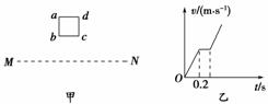 10.如图9-3-25甲所示,abcd是位于竖直平面内的边长为10 cm的正方形闭合金属线框,线框的质量为m=0.02 kg,电阻为R=0.1 Ω.在线框的下方有一匀强磁场区域,MN是匀强磁场区域的水平边界线,并与线框的bc边平行,磁场方向与线框平面垂直.现让线框由距MN的某一高度从静止开始下落,经0.2 s开始进入磁场,图乙是线框由静止开始下落的v-t图象.空气阻力不计,g取10 m/s2求: